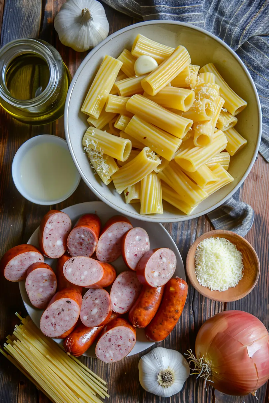 Creating a delicious brat pasta dish starts with the right ingredients, blending savory sausages with pasta and flavor-packed enhancers. Here are the key components to craft the perfect meal.