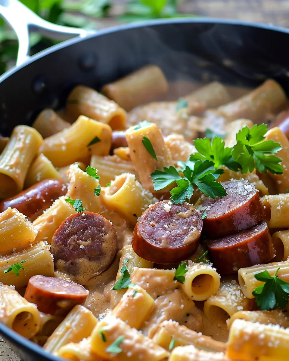 Transform your leftover grilled bratwurst into a rich, comforting, and savory pasta dinner. This hearty dish combines succulent slices of bratwurst with perfectly cooked rigatoni in a creamy garlic-parmesan sauce. It’s the ultimate way to repurpose leftovers, turning them into a restaurant-quality meal in under 30 minutes. Perfect for busy weeknights when you want something satisfying with minimal effort!