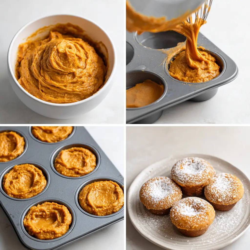 - Mix: In a large bowl, stir together the pumpkin puree and the dry spice cake mix until a thick batter forms.